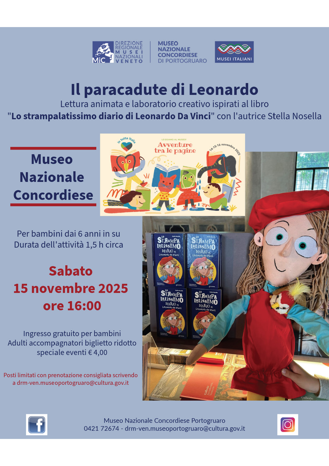 La scrittrice Stella Nosella leggerà insieme ai bambini alcune pagine tratte dal suo libro "Lo strampalatissimo diario di Leonardo da Vinci" (Storybox editore), coinvolgendoli in un laboratorio creativo.