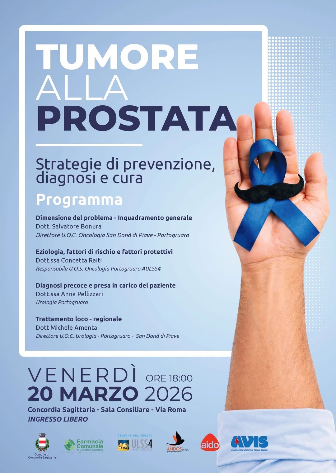 Un incontro informativo aperto alla cittadinanza per parlare di salute, prevenzione e diagnosi precoce del tumore alla prostata, con la partecipazione di specialisti del territorio.