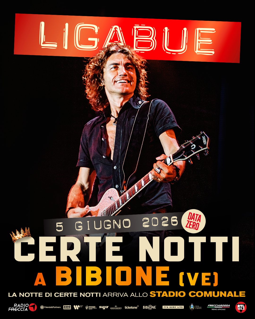 Il 5 giugno 2026, lo Stadio Comunale di Bibione ospiterà la data zero del tour 2026 di LUCIANO LIGABUE, un evento che inaugura ufficialmente il progetto “Certe notti”, anteprima delle tre tappe negli stadi di Roma, Torino e Milano.