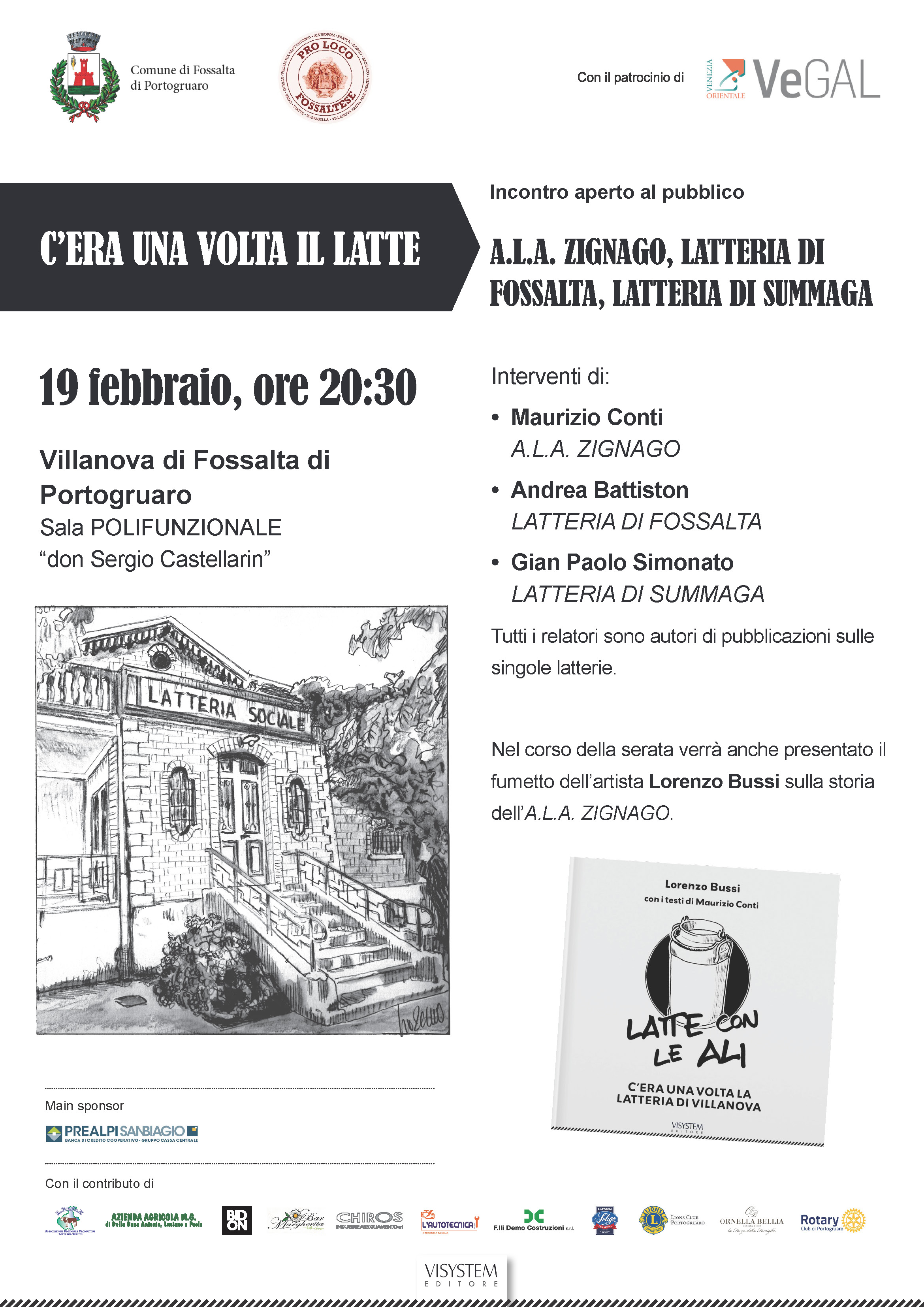 Incontro aperto al pubblico sulle tre latterie storiche: A.L.A. ZIGNAGO, LATTERIA DI FOSSALTA e LATTERIA DI SUMMAGA e presentazione del fumetto di Lorenzo Bussi sulla storia dell'A.L.A. ZIGNAGO.