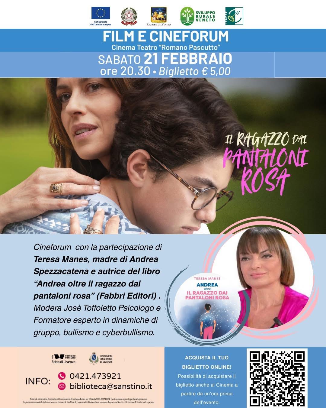Sul valore educativo del cinema è intervenuta anche l’assessore alla Cultura Andrea Simonella, che ha ricordato come la pellicola racconti la storia vera di Andrea Spezzacatena, il giovane che nel 2012 si tolse la vita dopo essere stato vittima di bullismo per aver indossato un paio di pantaloni scoloriti diventati rosa. «Il cinema sociale permette di affrontare temi come isolamento, violenza psicologica e ruolo dei social media – ha sottolineato –. Questo doppio evento vuole essere un grido collettivo di “stop al bullismo”».