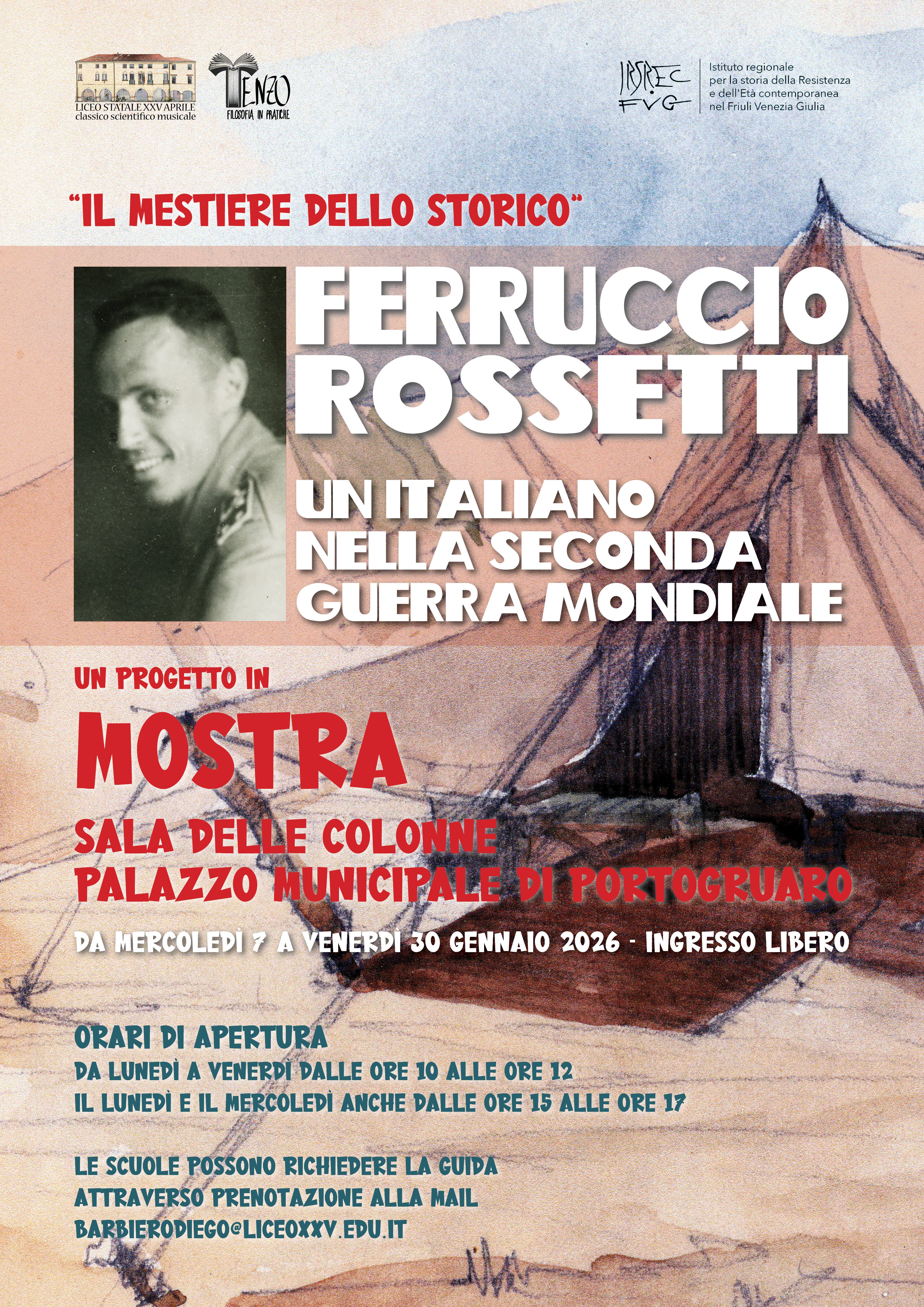 "Ferruccio Rossetti. Un italiano nella Seconda Guerra Mondiale", questo il titolo della mostra che da mercoledì 7 fino a venerdì 30 gennaio troverà sede presso la Sala delle Colonne del Palazzo Municipale di Portogruaro.