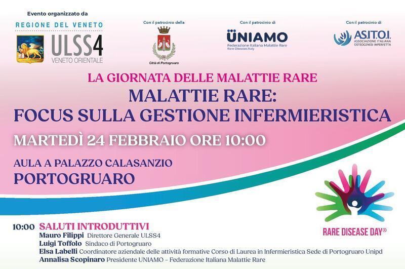 L’evento si svolgerà martedì 24 febbraio a Palazzo Calasanzio, a Portogruaro, e sarà focalizzato sull'attenzione e sul ruolo degli infermieri nella gestione del paziente con malattia rara.