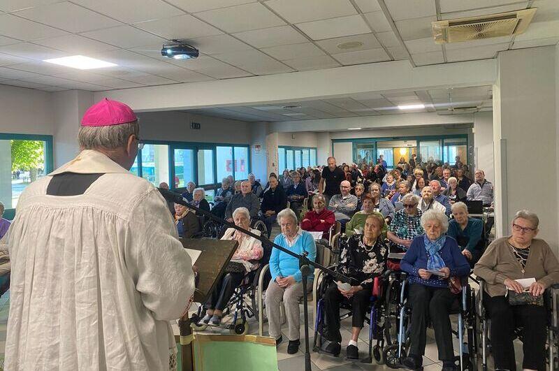 L'arrivo tra gli ospiti, l'accoglienza all'interno della struttura e un intenso momento di preghiera vissuto alla presenza dei familiari. E' così che la Residenza Francescon di Portogruaro ha accolto ieri pomeriggio il Vescovo della Diocesi di Concordia Pordenone, Monsignor Giuseppe Pellegrini, in città per il Giubileo dei Nonni. La giornata, organizzata dalla Diocesi, è iniziata alle 16.30 con la partenza dal Duomo di Sant'Andrea, dove il Vescovo ha atteso nonni e nipoti, celebrando il primo momento di preghiera. La processione è proseguita poi verso la casa di riposo, in Borgo San Gottardo, dove si è concluso il rito religioso legato alla ricorrenza. Al termine l'atteso momento conviviale offerto dai commercianti locali alla presenza di familiari, anziani e operatori. Centocinquanta, in totale, le persone presenti.