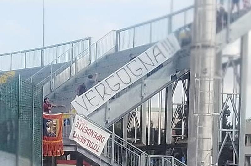 In realtà la tifoseria portogruarese si è limitata a esporre un lungo striscione con la scritta “VERGOGNA” per poi sostenere la squadra per tutta la gara come non era successo da parecchio tempo, accompagnata in più occasioni dal sostegno del numeroso pubblico che assiepava la tribuna centrale del “Piergiovanni Mecchia”.