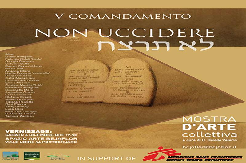 Lo Spazio Arte Bejaflor si prepara ad ospitare una nuova esposizione artistica: sabato 6 dicembre alle ore 17.30 verrà inaugurata una mostra costruita attorno a un tema di particolare e sentita attualità e che si ispira a un monito biblico: “V comandamento: non uccidere”. Si tratta di una mostra d'arte collettiva che ha visto il coinvolgimento di ben ventisette artisti impegnati a confrontarsi sul tema.