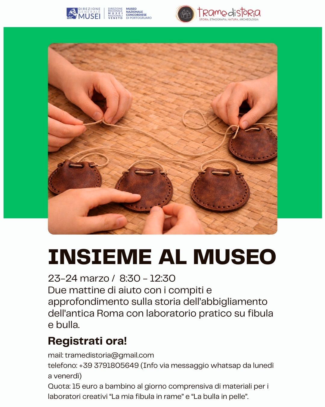 Due mattine di aiuto con compiti e approfondimento sulla storia dell'abbigliamento dell'antica Roma con laboratorio pratico su fibula e bulla.