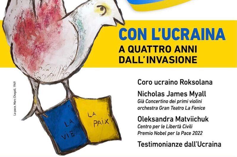 Domenica 22 febbraio l’Oratorio Pio X ospiterà “Pace e vita per l’Ucraina”, una manifestazione pubblica promossa da quindici associazioni culturali e sociali del territorio, con il patrocinio dei Comuni del Portogruarese, di San Donà di Piave e della Città Metropolitana di Venezia. L’iniziativa, ispirata al titolo di un dipinto di Marc Chagall, intende ribadire la vicinanza del Veneto Orientale alla popolazione ucraina a pochi giorni dal quarto anniversario dell’invasione russa del 24 febbraio 2022.