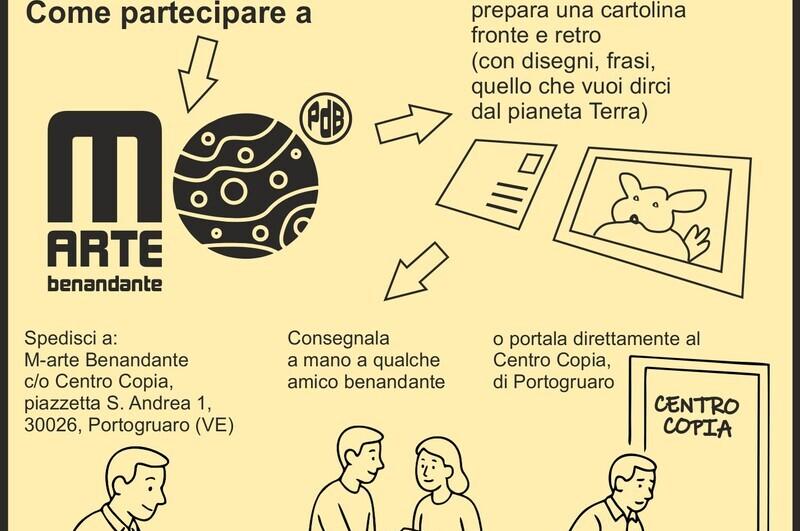Gli artisti terrestri potranno inviare le cartoline (formato 10x15 cm) entro il 16 novembre 2025 al “prestigioso ufficio postale marziano” presso Centro Copia, piazzetta S. Andrea 1, Portogruaro, oppure consegnarle a mano ai Benandanti in transito o direttamente al PAB.