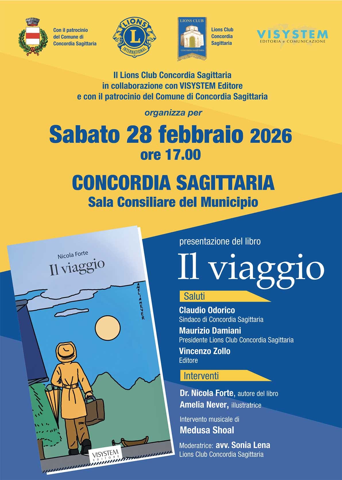 Sabato 28 febbraio 2026, alle ore 17.00, verrà presentato presso la Sala Consiliare del Municipio di Concordia Sagittaria "Il viaggio", il libro scritto dal Dr. Nicola Forte, illustrato da Amelia Never ed edito da VISYSTEM Editore.